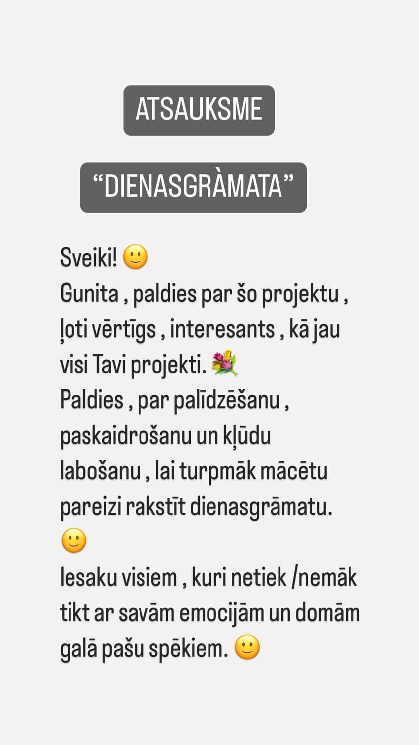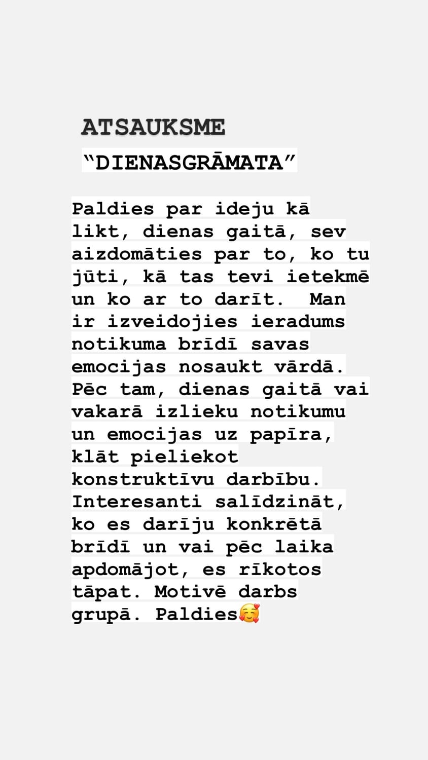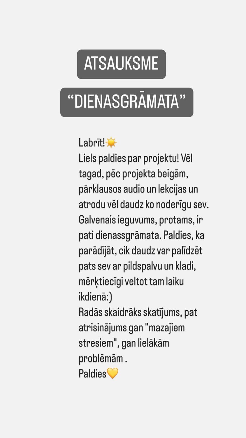 2. Mērķis ir nevis gadiem iet pie psihologa, bet uzlabot savas dzīves kvalitāti. Dienasgrāmatas metode ļauj pašam salikt savas domas un emocijas pa plauktiņiem un pašam atrast tām konstruktīvu risinājumu. Šī programma ilgst tikai 5 dienas, jo tas ir tieši tik, cik nepieciešams, lai apgūtu metodi, pielietotu un izjustu to dzīvē un varētu turpināt savu ikdienu, izmantojot šo instrumentu savu emociju izprašanai.