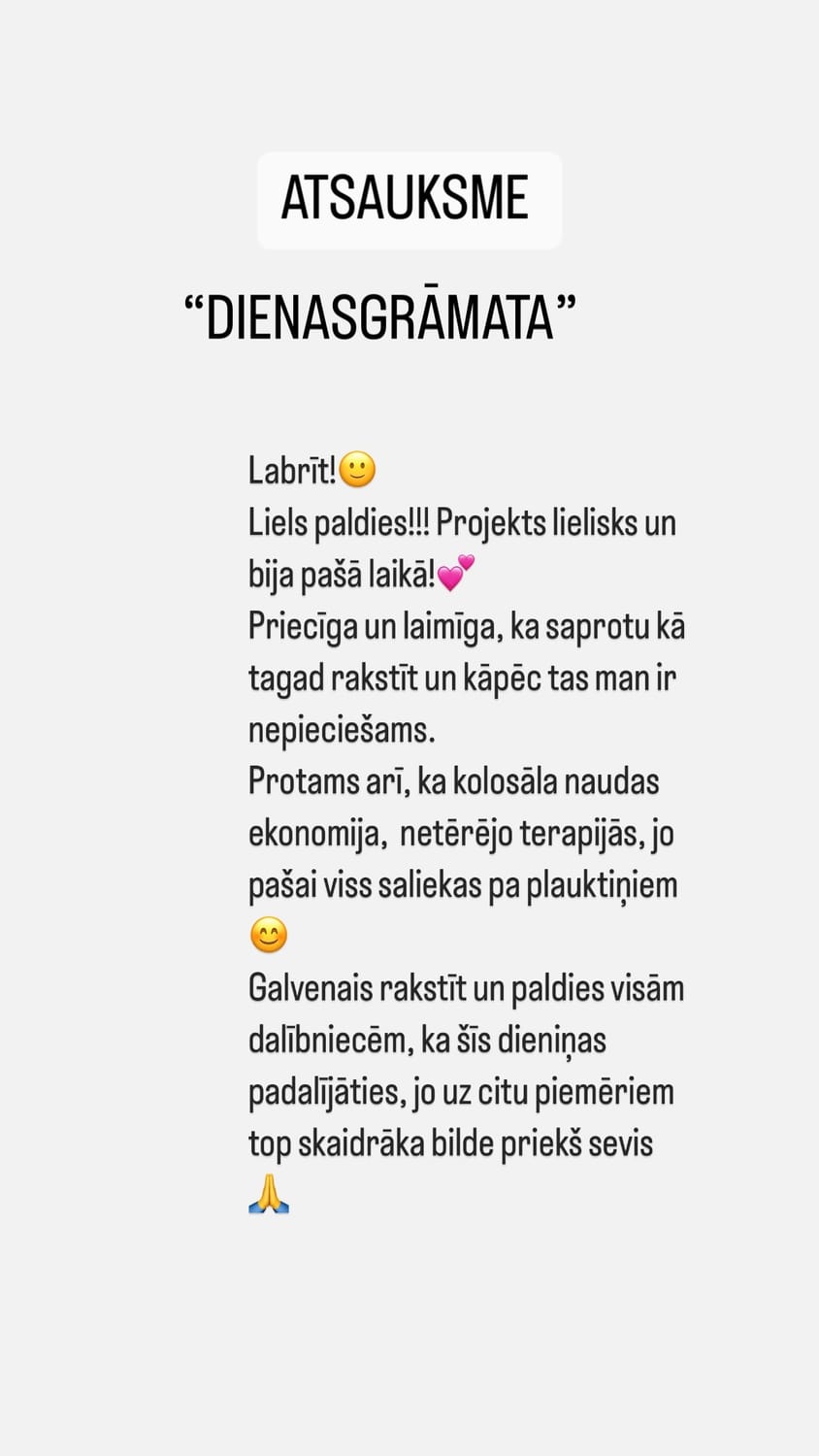 3. Ne tikai psihologs var mums palīdzēt, bet pirmkārt - mēs pašas sev. Kādreiz liekas, ka, lai sakārtotu savu emocionālo un mentālo pasauli, mums var palīdzēt tikai diplomēts speciālists. Ja pie speciālsta vērsties mums nav laika vai līdzekļu, mēs savu emocionālo veselību atstājam novārtā. Programma “Dienasgrāmata” parāda, kā mēs pašas varam būt savs lielākais atbalsts un terapeits, veltot vien nedaudz laika savām domām un sajūtām. Šī ir ģeniāli vienkārša metode, lai iegūtu skaidrību un izeju no situācijām, kurās nevaldām pār sevi.